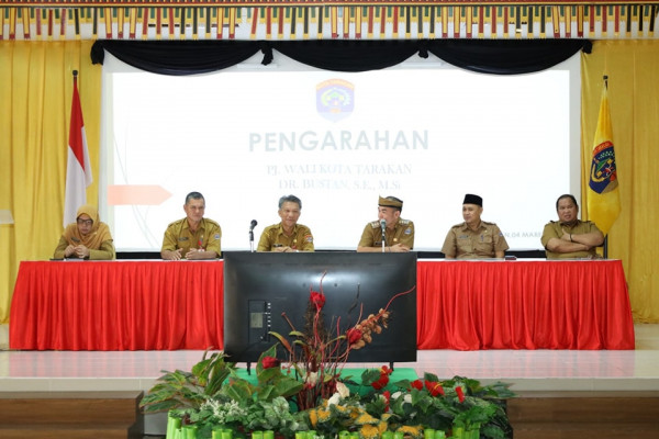 TARAKAN - Pj. Wali Kota Tarakan, Dr. Bustan, S.E., M.Si., memberikan arahan kepada seluruh pejabat eselon II dan III Pemerintah Kota Tarakan pada hari...