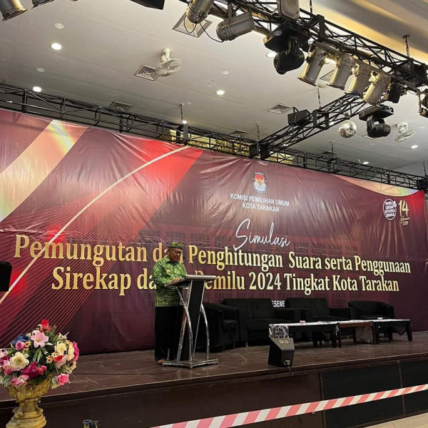 TARAKAN - Wakil Wali Kota Tarakan, Effendhi Djuprianto, menghadiri kegiatan simulasi pemungutan dan penghitungan suara serta penggunaan Sistem Rekapit...