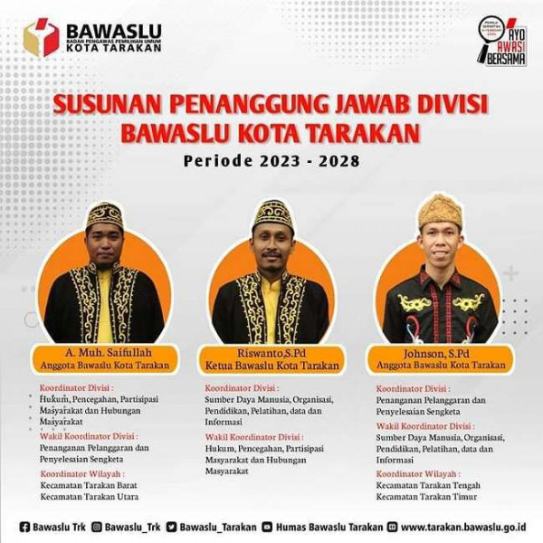 KBRN, Tarakan : Badan Pengawas Pemilu (Bawaslu) Tarakan memiliki tiga wajah komisioner baru yang menggantikan komisioner lama.Ketiga komisioner Bawasl...