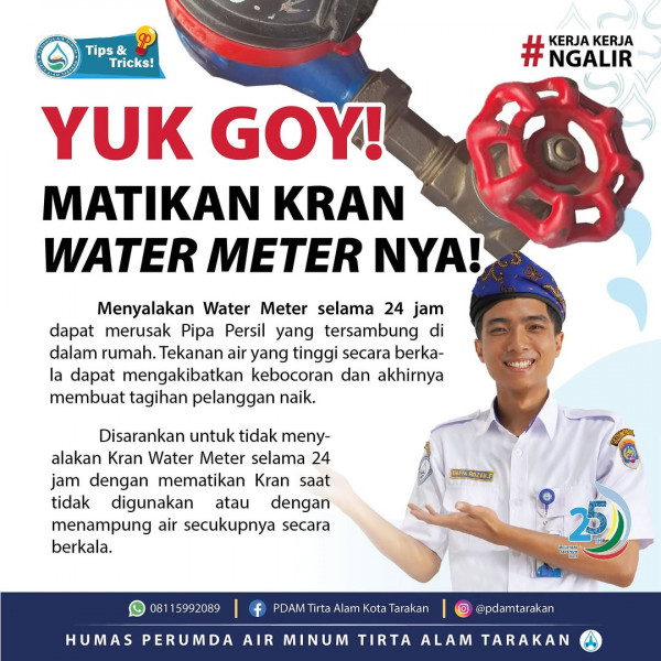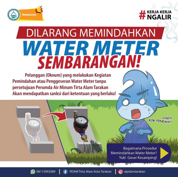 Hai Goy! Ingat dilarang ya memindahkan Water Meter secara sembarangan!Jika ingin melakukan pemindahan dimohon untuk melapor kepada kami ya? Biaya kegi...