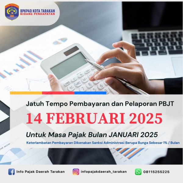 Jatuh Tempo Pembayaran dan Pelaporan PBJT 14 FEBRUARI 2025Untuk Masa Pajak Bulan JANUARI 2025Cusss...lebih cepat lebih baik ya...#pajakkitamemban...