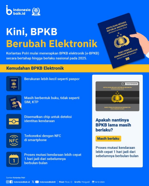Korlantas Polri mulai menerapkan BPKB elektronik (e-BPKB) secara bertahap.Masyarakat akan melakukan integrasi Buku Pemilik Kendaraan Bermotor (BPKB) m...