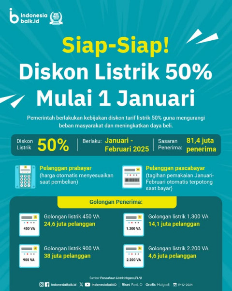 Pemerintah berlakukan kebijakan diskon tarif listrik 50% guna mengurangi beban masyarakat dan meningkatkan daya beli.Pemberlakukan diskon tarif listri...