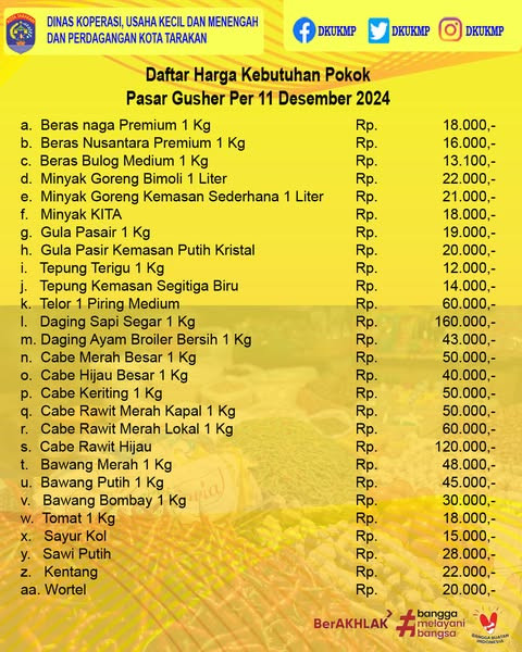 Daftar Harga Kebutuhan Pokok 11 Desember 2024 di Kota TarakanUpdate Daftar Harga Kebutuhan Pokok di Kota TarakanTanggal 11 Desember 2024#DKUKMP #Bapok...