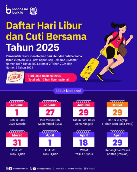 Daftar Hari Libur dan Cuti Bersama Tahun 2025Pemerintah melalui Surat Keputusan Bersama (SKB) 3 Menteri telah menyepakati dan menetapkan H...
