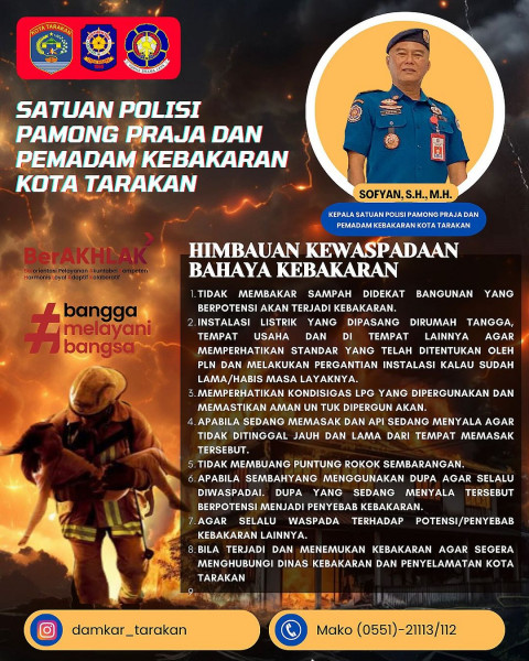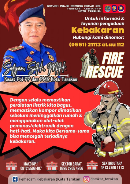 Informasi Layanan Pengaduan Kebakaran di Kota TarakanMenyikapi meningkatnya jumlah kasus kebakaran di wilayah Kota Tarakan akhir-akhir ini, Kepala Sat...
