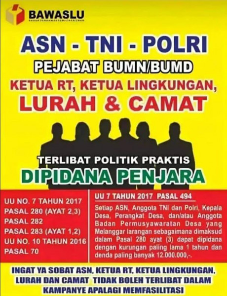 Terlibat Politik Praktis DIPIDANA PENJARA, Siapakah Itu?ASN, TNI, POLRI, Pejabat BUMN/BUMD Ketua RT, Ketua Lingkungan, LURAH, dan CAMATTerlibat P...