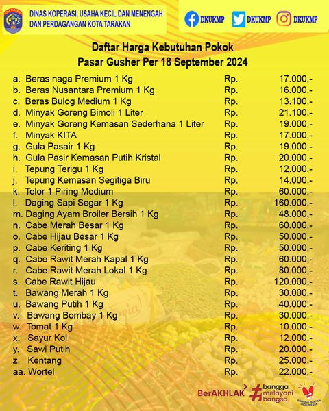 Daftar Harga Kebutuhan Pokok 18 September 2024 di Kota TarakanUpdate Daftar Harga Kebutuhan Pokok di Kota TarakanTanggal 18 September 2024#DKUKMP #Bap...