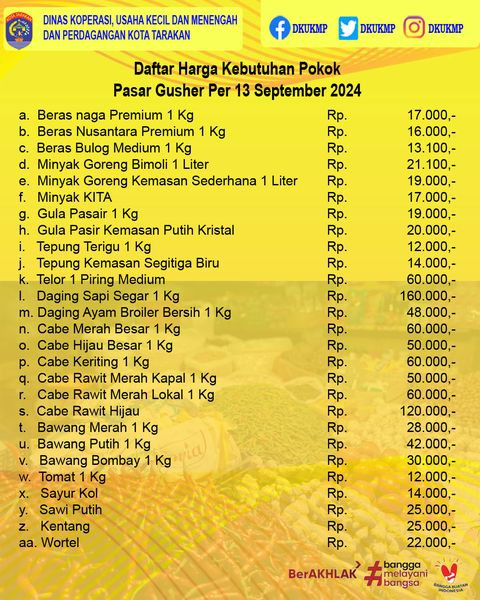 Daftar Harga Kebutuhan Pokok 13 September 2024 di Kota TarakanUpdate Daftar Harga Kebutuhan Pokok di Kota TarakanTanggal 13 September 2024#DKUKMP #Bap...