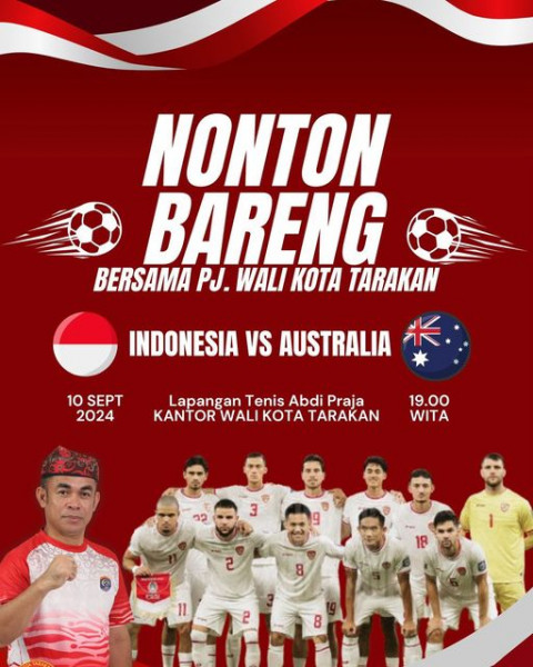 Ayo warga Kota Tarakan!Mari kita ramaikan acara nonton bareng Kualifikasi Piala Dunia 2026 Timnas Indonesia vs Australia.Yuk, jangan sampai ketinggala...