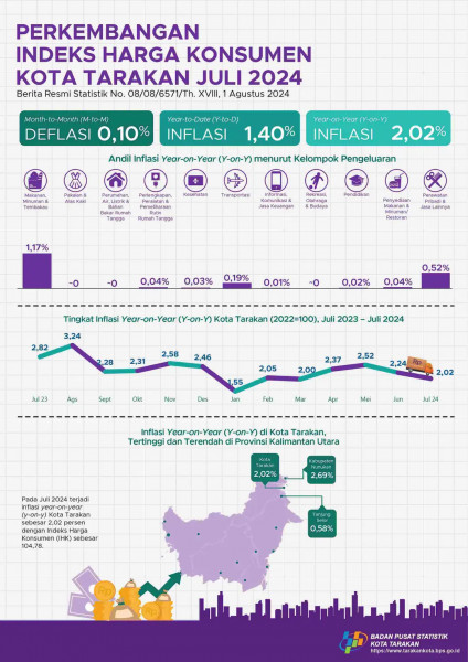 Inflasi Kota Tarakan Bulan Juli 2024Perkembangan Indeks Harga Konsumen Kota Tarakan Juli 2024AbstraksiPada Juli 2024 terjadi inflasi year on year (y-o...