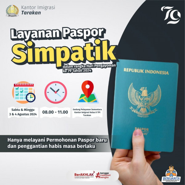 Sobat MidoSimak yuk informasi dibawah ini tentang Layanan Paspor Simpatik Dalam Rangka Hari Pengayoman ke-79Hari : Sabtu & MingguTanggal : 03 &...