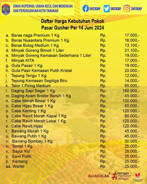 Daftar Harga Kebutuhan Pokok 14 Juni 2024 di Kota TarakanUpdate Daftar Harga Kebutuhan Pokok di Kota TarakanTanggal 14 Juni 2024#DKUKMP #Bapok #KotaTa...