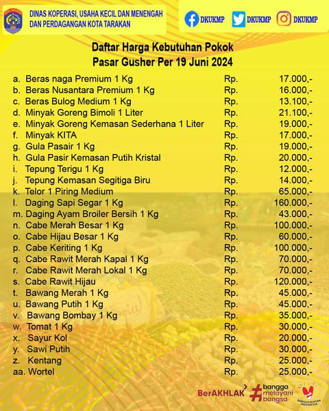 Daftar Harga Kebutuhan Pokok 19 Juni 2024 di Kota TarakanUpdate Daftar Harga Kebutuhan Pokok di Kota TarakanTanggal 19 Juni 2024#DKUKMP #Bapok #KotaTa...