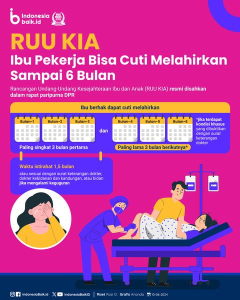 RUU KIA Ibu Pekerja Bisa Cuti Melahirkan Sampai 6 BulanUndang-Undang Kesejahteraan Ibu dan Anak (UU KIA) resmi disahkan dalam rapat paripurna DPR, Sel...