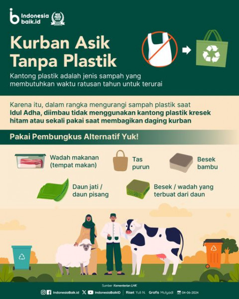 Kurban Asik Tanpa PlastikKantong plastik merupakan jenis sampah yang membutuhkan waktu ratusan tahun untuk terurai secara alamiah. Apalagi, kanto...