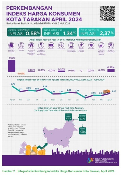 Inflasi Kota Tarakan Bulan April 2024Perkembangan Indeks Harga Konsumen Kota Tarakan April 2024Jadwal Rilis : 2024-05-02Abstraksi :Pada Apri...