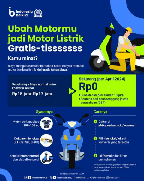 Konversi Motor Listrik Gratis-tisssssssPemerintah mengumumkan konversi motor berbahan bakar minyak (BBM) menjadi listrik gratis secara terbatas mulai...