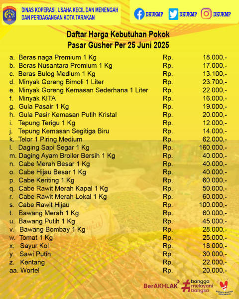 Perkembangan Indeks Harga Konsumen Kota Tarakan Juni 2025Juni 2025 inflasi Year on Year (y-on-y) Kota Tarakan sebesar 1,23 persen.Pada Juni ...