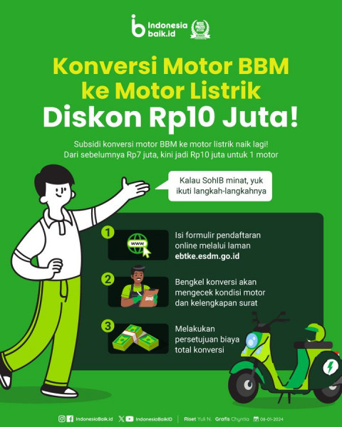 Kementerian Energi dan Sumber Daya Mineral (ESDM) menyatakan besaran subsidi program konversi sepeda motor konvensional berbahan bakar fosil menjadi s...
