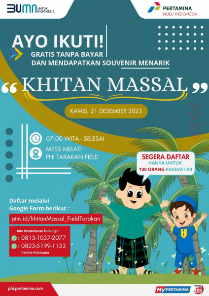 *Khitanan Massal Gratis Pertamina!* 🎉 Hanya untuk 100 orang pendaftar pertama! Kami mengundang Anda dan keluarga untuk bergabung...