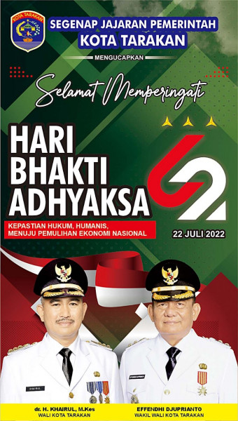 Segenap Jajaran Pemerintah Kota TarakanMengucapkanSelamat Hari Bhakti Adhyaksa Ke-6222 Juli 2022“Kepastian Hukum, Humanis, Menuju Pe...