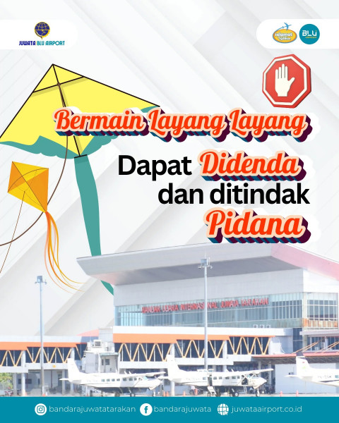 Hi Sahabat Bandara JuwataBermain Layang - layang di Kawasan Keselamatan Operasi Penerbangan (KKOP) sangat berbahaya dan dilarang berdasarkan Undang-Un...